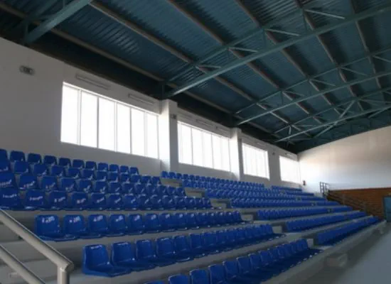 α) την αίθουσα αθλοπαιδιών και γυμναστικής που είναι εξοπλισμένη με αναδιπλούμενες κυλιόμενες μπασκέτες, ηλεκτρονικό πίνακα, ορθοστάτες, δίχτυ κλπ.,